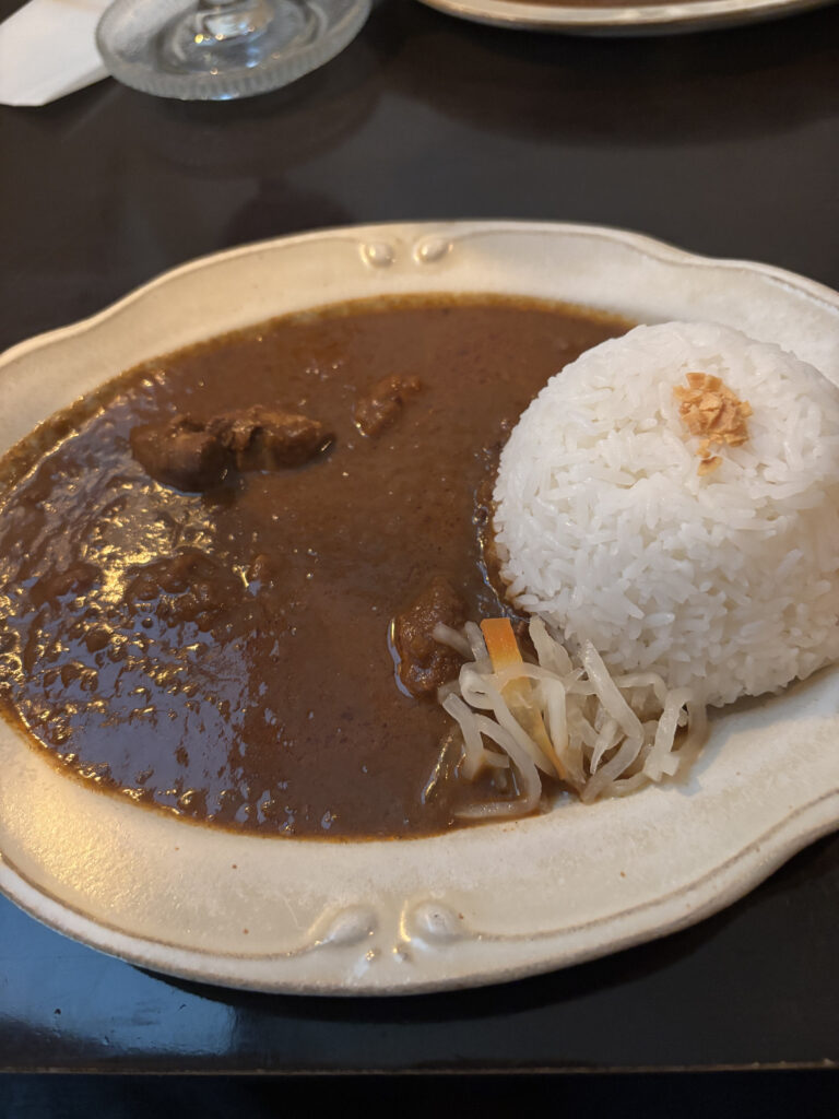 杉並区の高円寺にある「旅する喫茶」さんのお出汁のきいたなんとかカレーみたいな名前だったと思う。どちらかというと欧風?なのかな、とにかく素晴らしく美味しかった。これをきっかけにカレー屋巡りを始めそうなくらいには美味しかった。